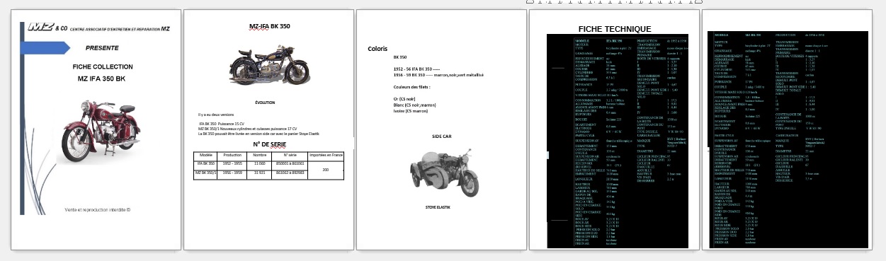Nous avons édité des fiches synthétiques par modèles regroupant toutes les indications, types, années de production, N° de série, coloris... qui permettront d'identifier les modèles et leur conformité par rapport à l'origine.